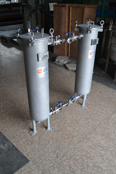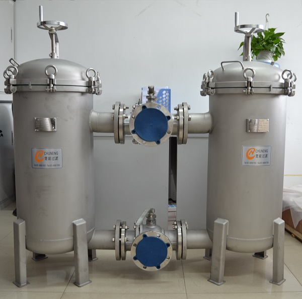 双联过滤器采用4个直通阀门或2个三通球阀,将两个单筒过滤器组装在一个机座上,清洗过滤器时不必停车,保证其连续工作,是不停车生产线过滤装置首选。